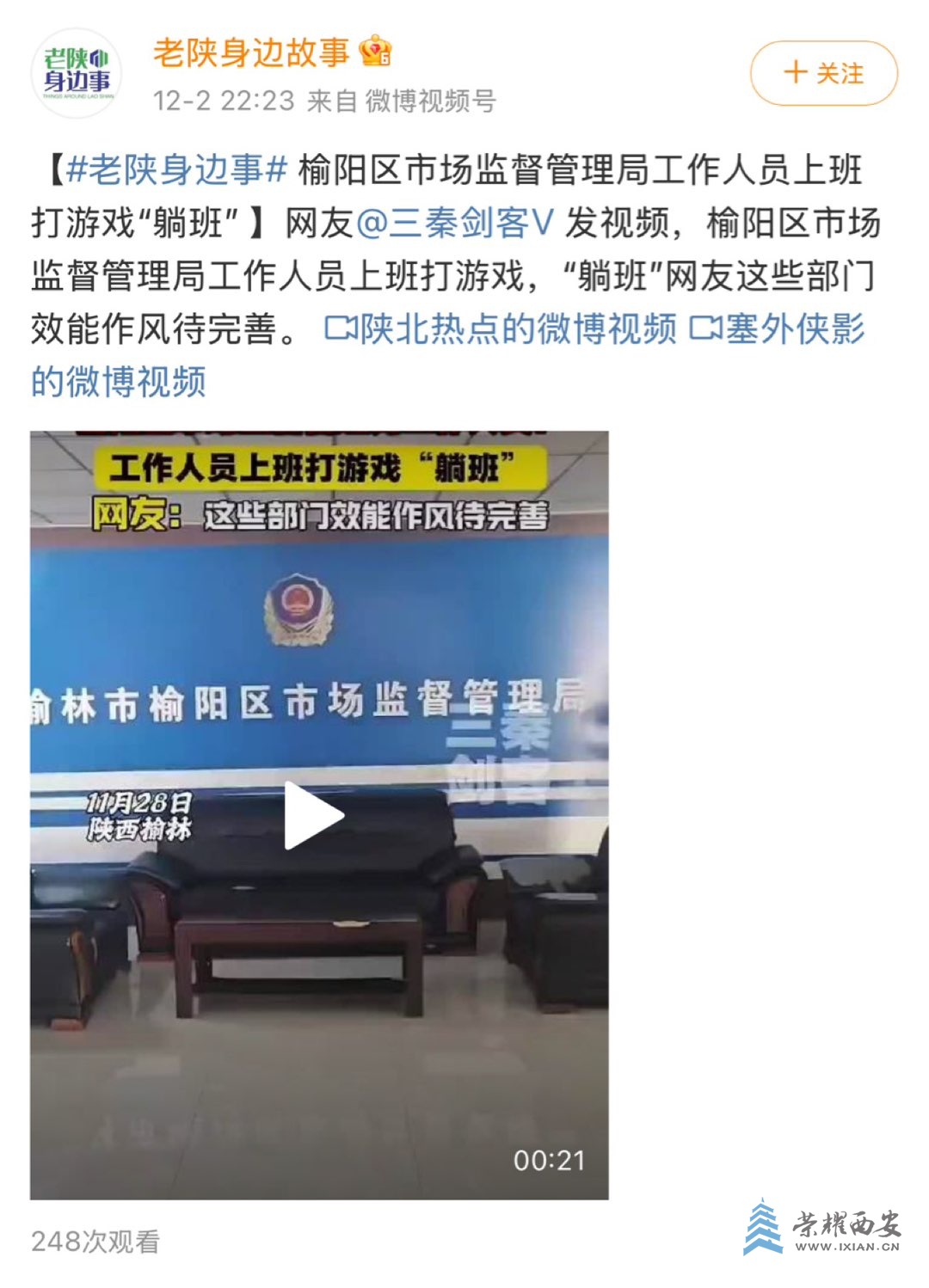 网友爆料:榆阳区市场监督管理局工作人员上班打游戏“躺班”