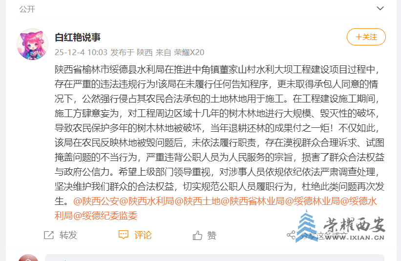 网友爆料:榆林市绥德县水利局在镇董家山村水利大坝工程,存在违法违规行为!